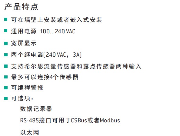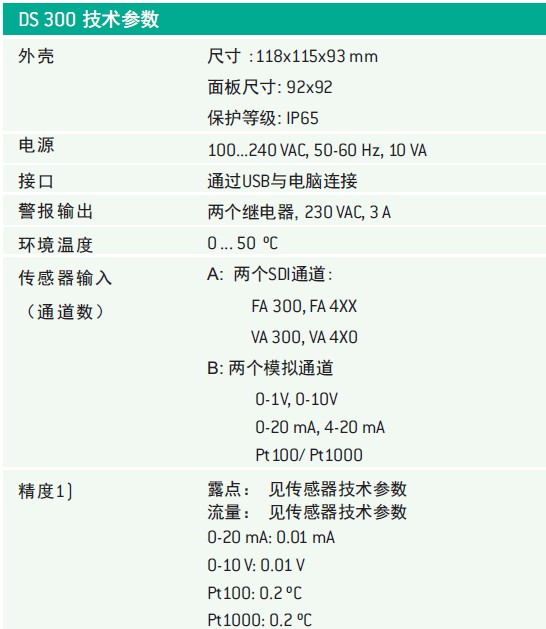DS 300 是一種工業(yè)用的數(shù)據(jù)記錄儀。主機包括一個圖形液晶顯示器、兩個繼電器輸出、面板式/掛墻安裝外殼上的USB 接口??筛鶕?jù)客戶的特殊要求,采用各種可選項來配置DS 300。這些可選項包括:數(shù)據(jù)記錄、用于Modbus或CSBus的RS-485-接口、以太網(Ethernet)、希爾思流量和露點