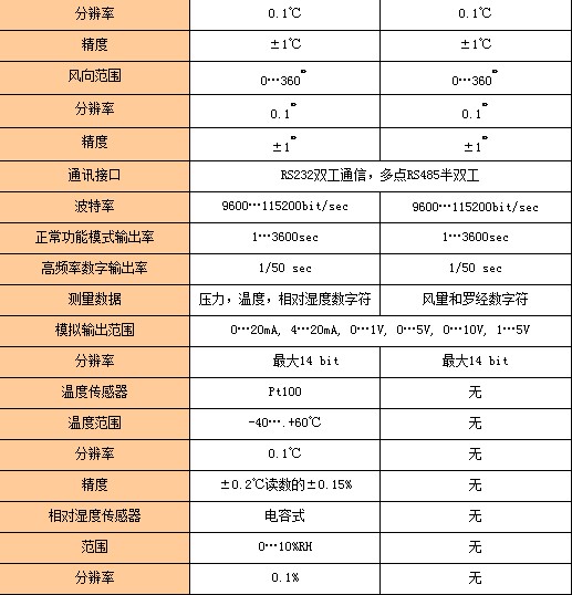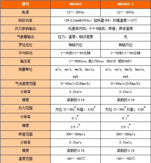 HD2003和HD2003.1三軸超聲波風速風向儀,可以測量風速,風向,U-V-W速度的Cartesian(笛卡兒坐標),聲速和聲溫。本儀器可通過RS232或RS485串口和電腦連接,進行監(jiān)控和設置。 HD2003超聲波風速風向儀還可以另外測量溫度,相對濕度和大氣壓力。主要功能:實時監(jiān)測風速、風向、UWV速度、聲速、聲溫等HD2003超聲波風速風向儀還可以測量溫度、相對濕度、大氣壓5個模擬電壓或者電流輸出標準RS232/485通訊功能可設置數(shù)字輸出率可設置平均周期,1-60秒,1-60分鐘自診斷和報告靈活簡易的演示軟件,教會您如何設置自己需要的參數(shù)自動指北功能低功耗。